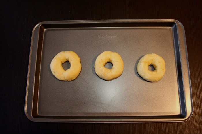 5. Divide your dough into 3 even pieces. Roll each one out to form a log (mine were around 6 inches long). Connect the ends by pinching them together to form a circle and place on a nonstick cookie sheet.